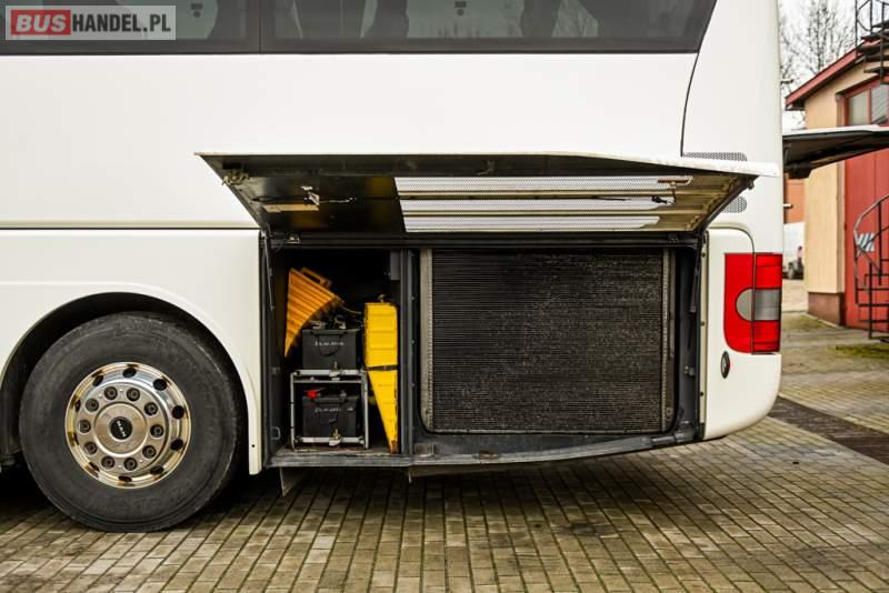 Wyposażenie: klimatyzacja, WC, lodówka, caffebar, kabina sypialna, oświetlenie indywidualne, nawiewy dyszowe, podnóżki, stoliczki, siateczki, ABS, ASR, tempomat, retarder, telefon, nawigacja, CD, mikrofon, radio, fotele odchylane i rozsuwane, wyświetlacz matrix, sejf, regulacja wysokości nadwozia, centralny zamek, podwójne szyby boczne, wspomaganie kierownicy, aluminiowe felgi, elektryczne lusterka, ogrzewanie stacjonarne, DVD, ESP
