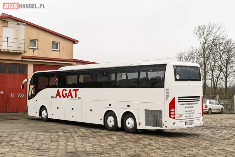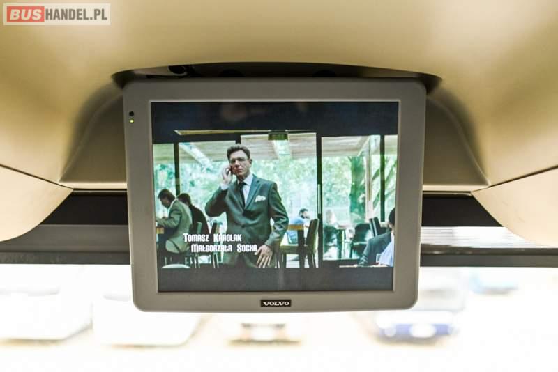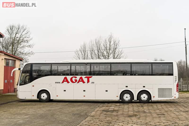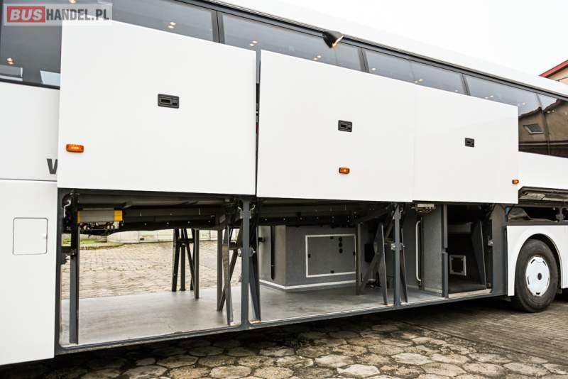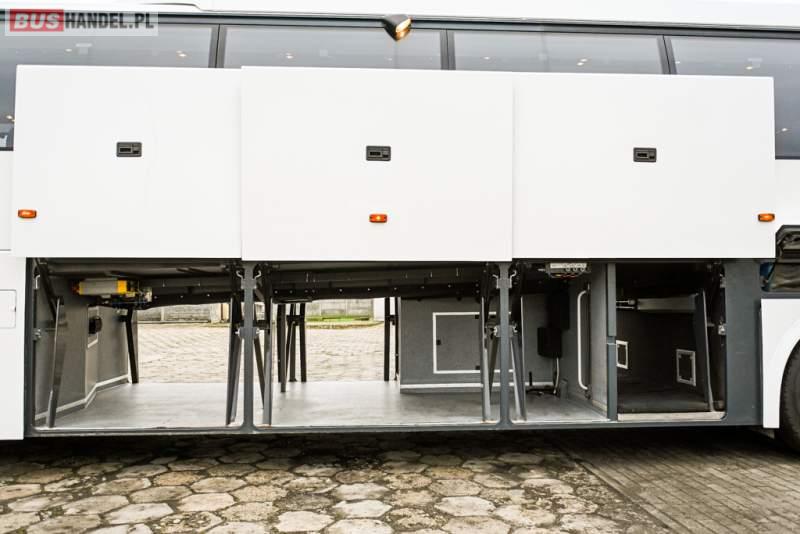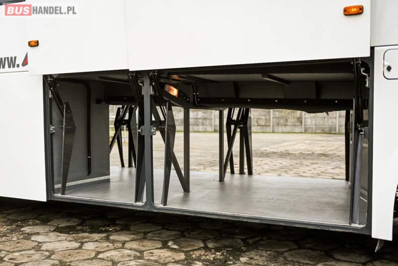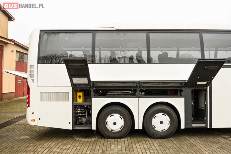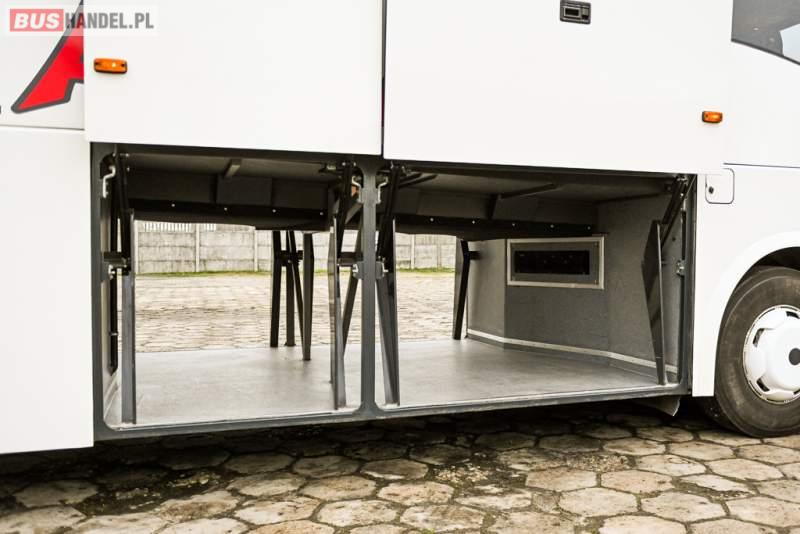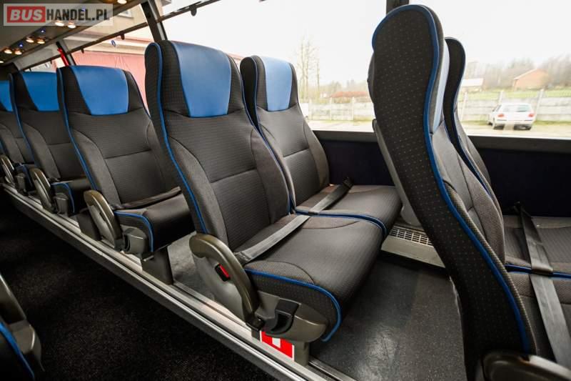 Wyposażenie: klimatyzacja, WC, lodówka, caffebar, kabina sypialna, oświetlenie indywidualne, nawiewy dyszowe, podnóżki, stoliczki, siateczki, ABS, ASR, tempomat, retarder, telefon, CD, mikrofon, radio, fotele odchylane i rozsuwane, wyświetlacz matrix, sejf, regulacja wysokości nadwozia, centralny zamek, podwójne szyby boczne, wspomaganie kierownicy, elektryczne lusterka, ogrzewanie stacjonarne, DVD, ESP